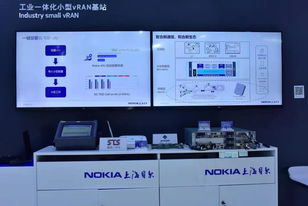 超訊通信5G小基站在諾基亞上海貝爾展館“工業(yè)一體化小型vRAN基站”展柜上展出,吸引了眾多廠家及專業(yè)客戶關(guān)注。展會(huì)現(xiàn)場(chǎng),諾基亞上海貝爾領(lǐng)導(dǎo)陪同芬蘭駐中國(guó)大使和上海市政府人員參觀了5G工業(yè)一體化小型vRAN展柜,詳細(xì)介紹了工業(yè)一體化小型vRAN的架構(gòu)及開(kāi)放白盒的生態(tài)。