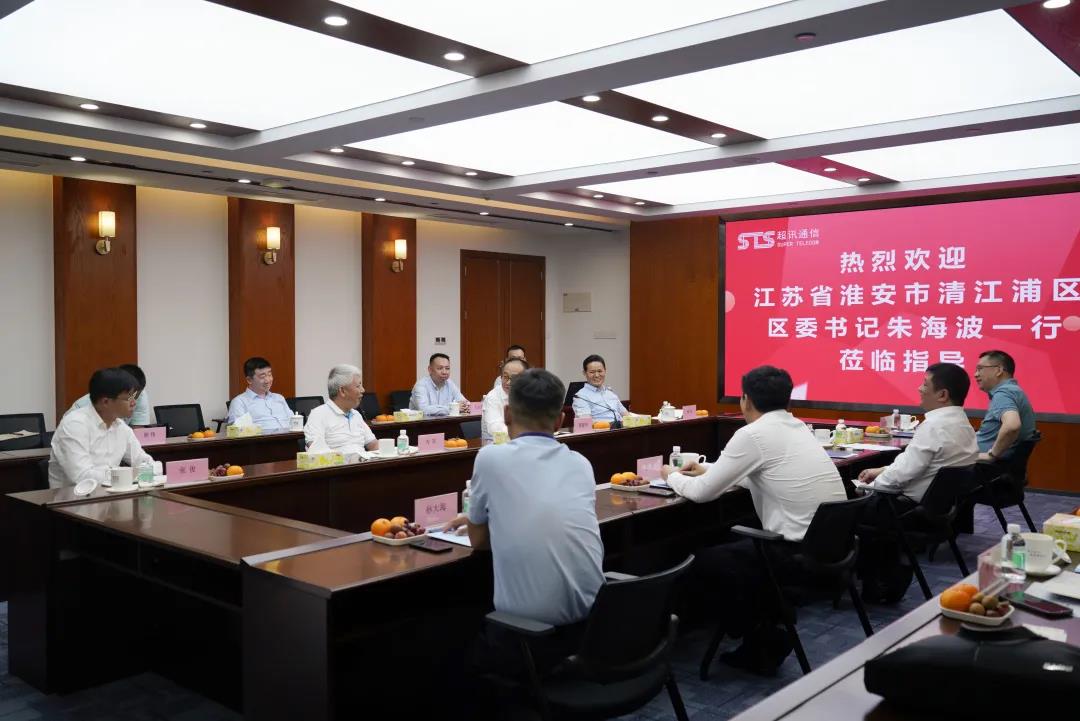 2021年5月9日,清江浦區(qū)區(qū)委書記朱海波,清江浦區(qū)區(qū)委常委、常務(wù)副區(qū)長(zhǎng)于升, 清江浦區(qū)南部新城開發(fā)建設(shè)指揮部指揮長(zhǎng)、淮安現(xiàn)代商務(wù)集聚區(qū)管委會(huì)主任、黨委書記陸茂兵等一行7人蒞臨超訊通信進(jìn)行實(shí)地調(diào)研指導(dǎo)。