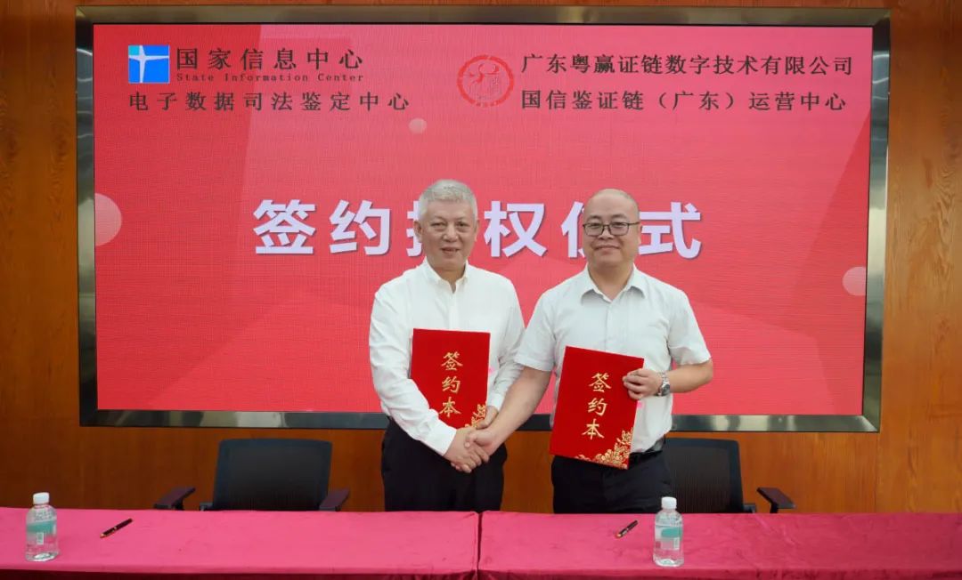 日前,在廣東廣州,超訊通信股份有限公司孫公司廣東粵贏證鏈數(shù)字技術(shù)有限公司與國家信息中心電子數(shù)據(jù)司法鑒定中心舉行了簽約授權(quán)儀式。超訊通信副董事長萬軍,國家信息中心電子數(shù)據(jù)司法鑒定中心副主任茍軍,作為雙方簽約代表出席此次簽約授權(quán)儀式。超訊通信董事長梁建華、副總經(jīng)理陳桂臣、總經(jīng)理助理周威、中贏證鏈運(yùn)營團(tuán)隊(duì)也一同見證此次儀式。