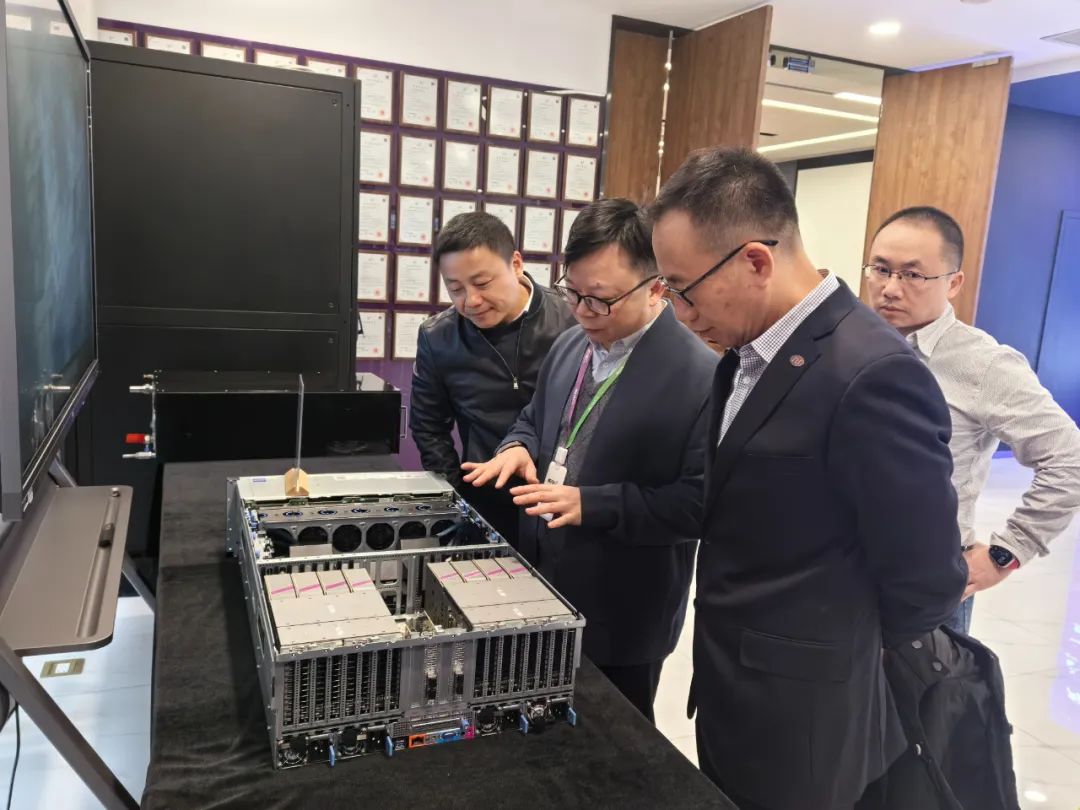 沐曦董事長&CEO陳維良向梁建華董事長一行的到來表示熱烈歡迎,介紹了沐曦的發(fā)展歷程、產(chǎn)品技術(shù)沿革以及未來發(fā)展規(guī)劃,并在展廳詳細(xì)講解了多場景應(yīng)用的AI訓(xùn)練推理一體機(jī)等國產(chǎn)GPU系列產(chǎn)品。