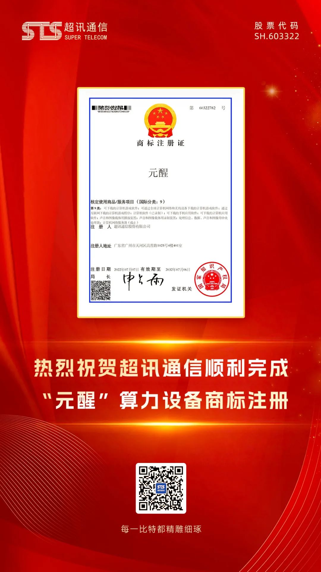 近日,超訊通信旗下重要商標(biāo)“元醒”成功獲得商標(biāo)注冊(cè)證。