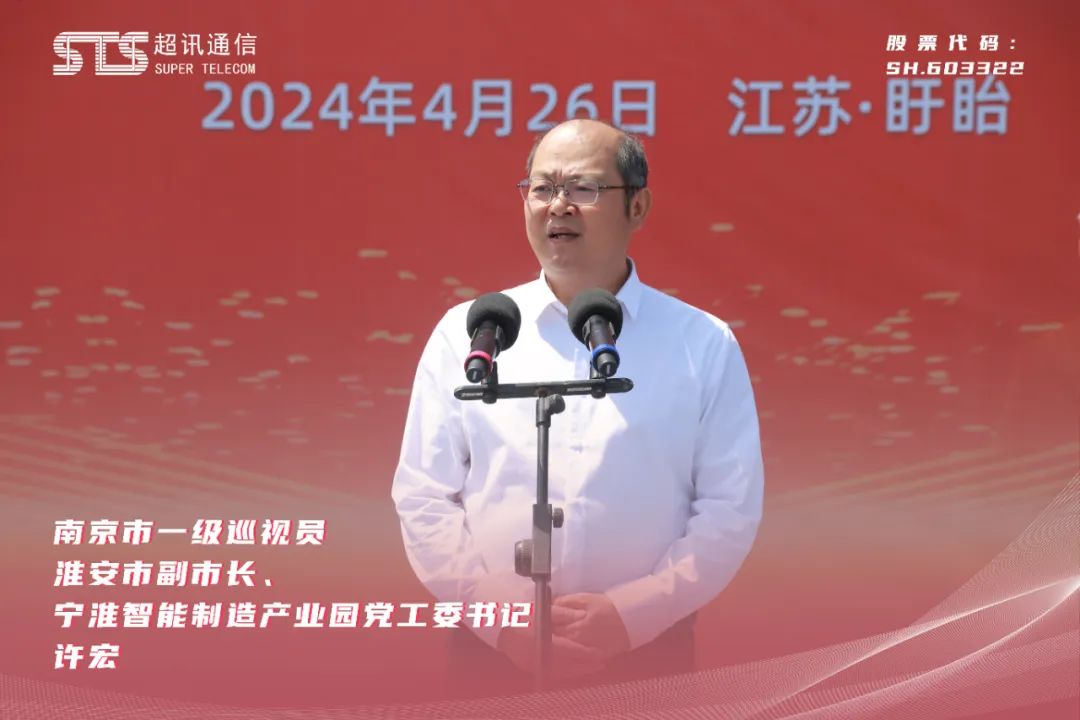 南京市一級巡視員、淮安市副市長、寧淮智能制造產(chǎn)業(yè)園黨工委書記許宏,市政府黨組成員、寧淮智能制造產(chǎn)業(yè)園黨工委副書記、管委會主任張巍,盱眙縣委書記孫志標(biāo),縣委副書記、縣長王長俊,公司副董事長張俊,公司總經(jīng)理鐘海輝,公司董事周威,公司副總經(jīng)理王清濤、徐竹,公司資深總經(jīng)理萬軍,公司董事長助理陳桂臣等領(lǐng)導(dǎo)出席開工儀式。