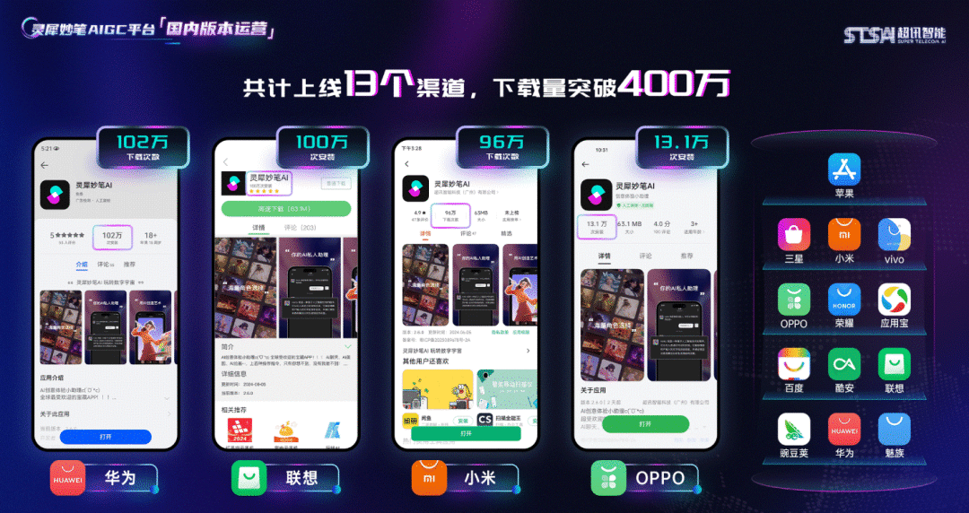 公司AI業(yè)務(wù)則集中于生成式AI技術(shù),旗下子公司研發(fā)的垂類(lèi)APP——靈犀妙筆AI,憑借涵蓋12大板塊,4,000+智慧體的多功能集成,贏得了國(guó)內(nèi)外市場(chǎng)和用戶的青睞,國(guó)內(nèi)下載量超過(guò)400萬(wàn)次,海外下載量達(dá)到500萬(wàn)次,日活躍用戶數(shù)最高突破50萬(wàn)。該APP在市場(chǎng)上表現(xiàn)出色,其獨(dú)特優(yōu)勢(shì)在于讓用戶能夠零門(mén)檻地使用AI進(jìn)行內(nèi)容創(chuàng)作,快速實(shí)現(xiàn)“所想即所得”。