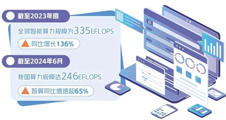 與此同時,我國算力結(jié)構(gòu)不斷調(diào)整,智算規(guī)模增長勢頭強(qiáng)勁;存力規(guī)模持續(xù)擴(kuò)大,先進(jìn)存力占比不斷提升;運(yùn)力質(zhì)量顯著提升,網(wǎng)絡(luò)設(shè)施不斷升級。截至2024年6月,我國算力規(guī)模達(dá)246EFLOPS,智算同比增速超過65%。
