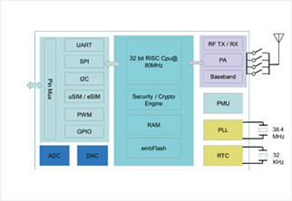 | + | 集成NB-IoT基帶和射頻 |